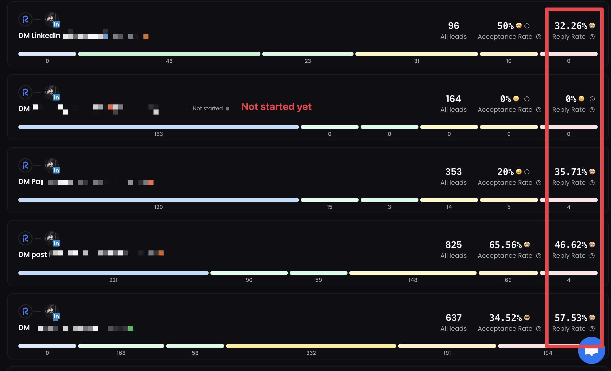 Campaign 4: 637 leads → 57.53% reply rate
