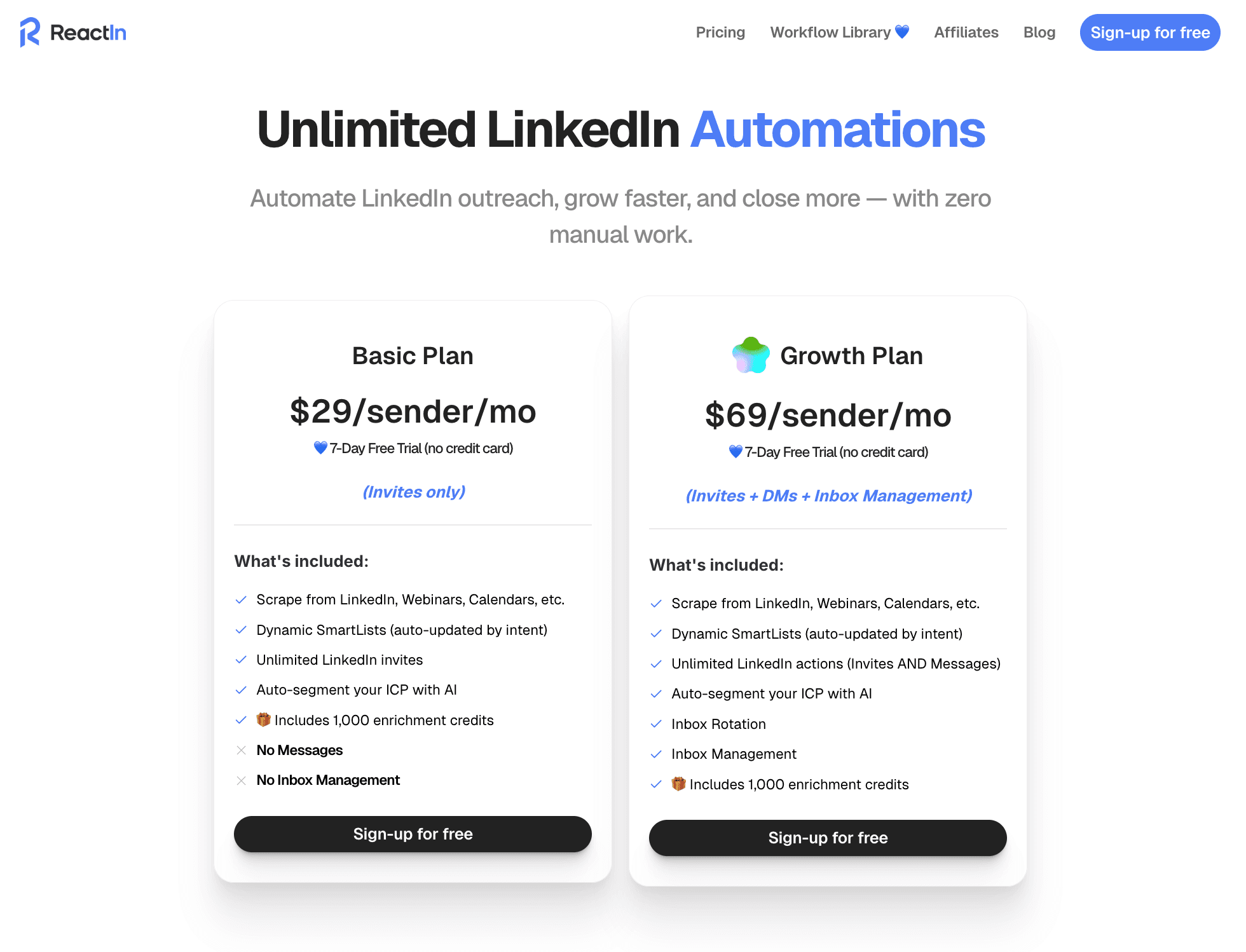 ReactIn Growth + LinkedIn Premium = $69 + $39 = $108/month